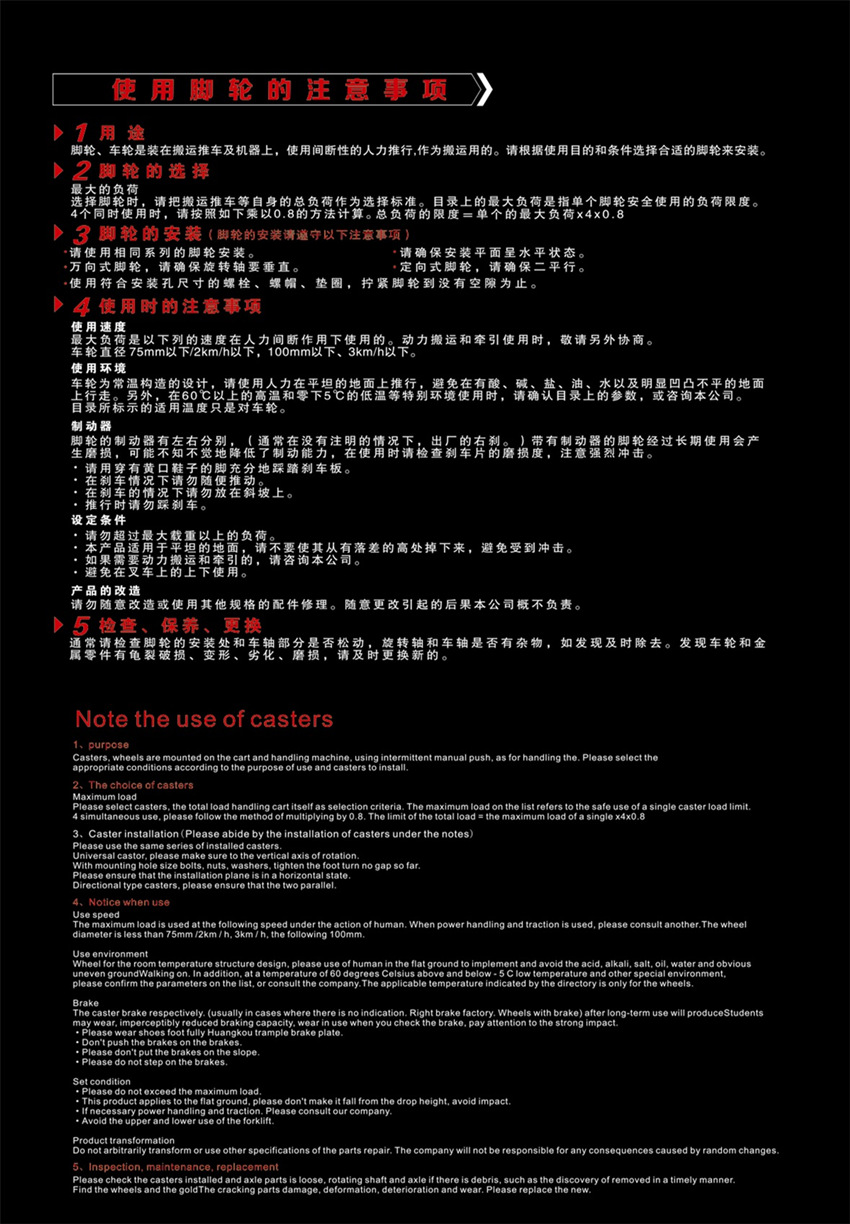 使用脚轮注意事项